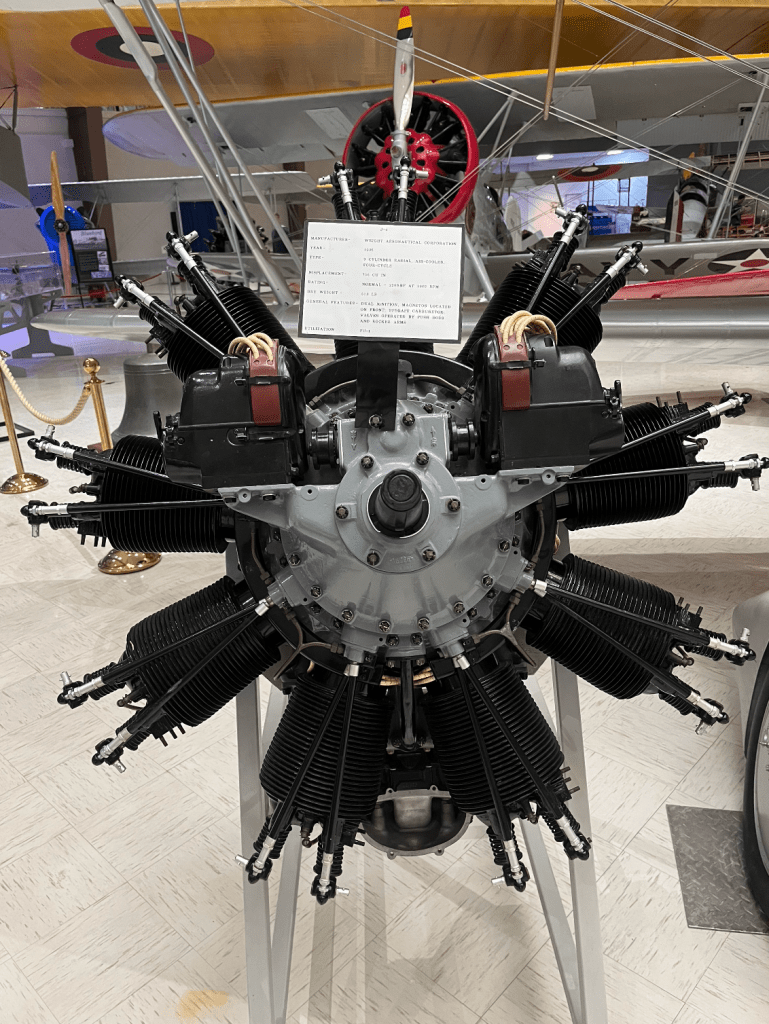 A particular highlight was the exhibit on aircraft engines, which provided an in-depth look at the technological advancements that have powered aviation. The evolution from piston engines to jet engines represents a significant leap in engineering, with each iteration pushing the boundaries of efficiency and power. The complexity and precision required to design and manufacture these engines are truly impressive, reflecting the ingenuity and problem-solving skills that define the field of engineering. Shown below are two examples of different engines that showcase the evolution from the biplane era to the age of jet aircraft.